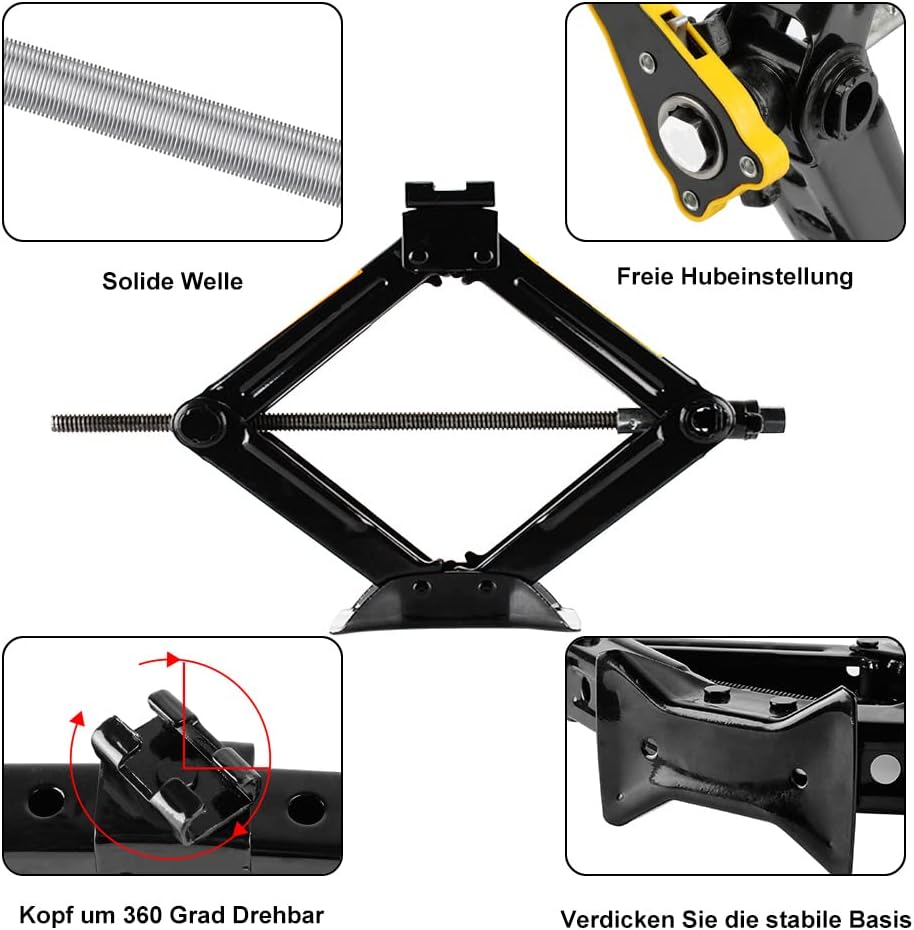 Cric Voiture Montant Ciseaux Leviers Levage À Poignée Cliquet Auto 2 Tonnes - Ematjer